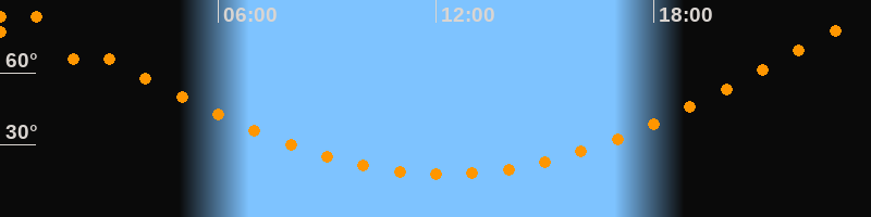 Höchster Stand (Kulmination)00:14 Uhr (h = 83,6°)