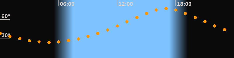 | Höchster Stand (Kulmination) | 17:00 Uhr (h = 76,9°) |