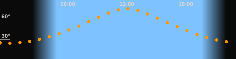 | Höchster Stand (Kulmination) | 12:54 Uhr (h = 76,9°) |