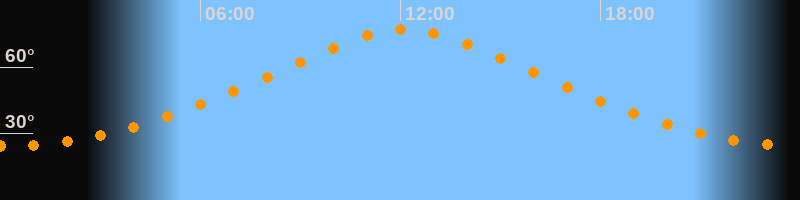 | Höchster Stand (Kulmination) | 12:08 Uhr (h = 76,9°) |