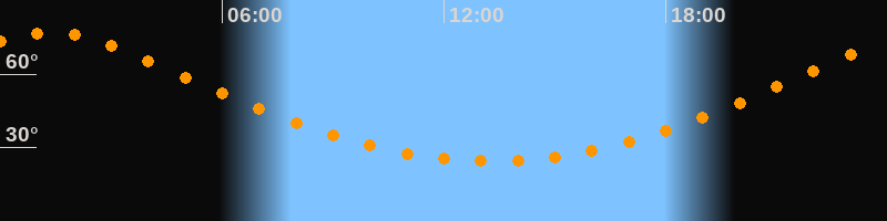 | Höchster Stand (Kulmination) | 01:16 Uhr (h = 76,9°) |