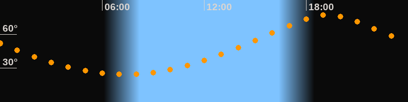 | Höchster Stand (Kulmination) | 19:17 Uhr (h = 76,9°) |