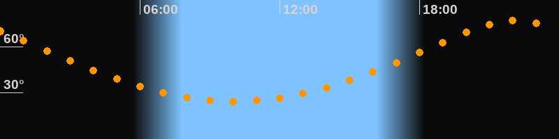| Höchster Stand (Kulmination) | 22:03 Uhr (h = 76,9°) |