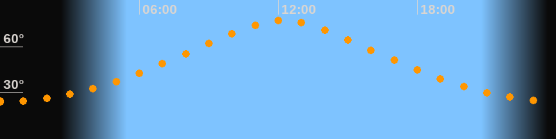 | Höchster Stand (Kulmination) | 12:10 Uhr (h = 76,9°) |