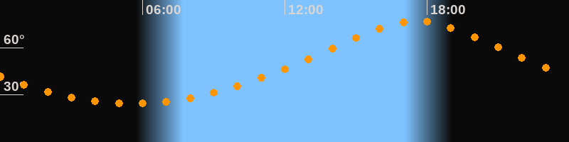 | Höchster Stand (Kulmination) | 17:33 Uhr (h = 76,9°) |