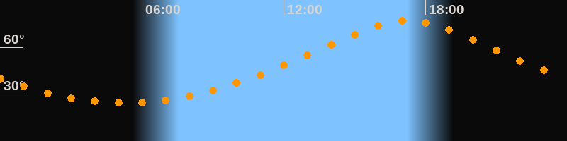 | Höchster Stand (Kulmination) | 17:14 Uhr (h = 76,9°) |