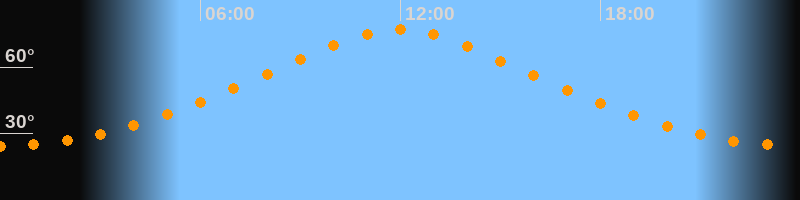 | Höchster Stand (Kulmination) | 11:56 Uhr (h = 76,9°) |