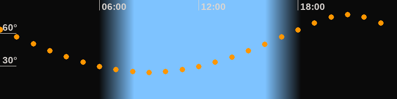| Höchster Stand (Kulmination) | 20:59 Uhr (h = 76,9°) |
