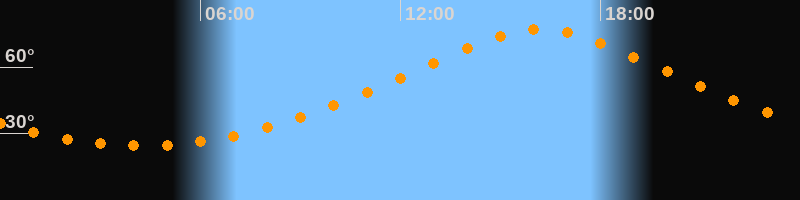 | Höchster Stand (Kulmination) | 16:12 Uhr (h = 76,9°) |