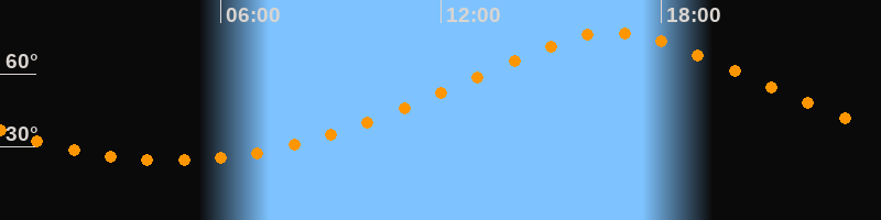 | Höchster Stand (Kulmination) | 16:40 Uhr (h = 76,9°) |