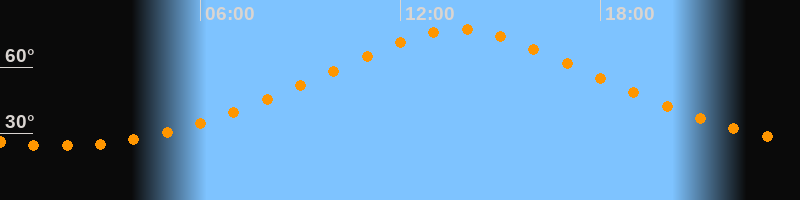 | Höchster Stand (Kulmination) | 13:45 Uhr (h = 76,9°) |