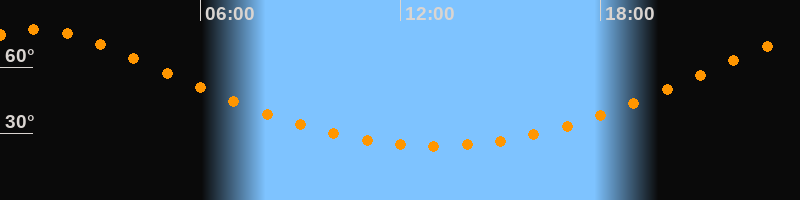 | Höchster Stand (Kulmination) | 01:02 Uhr (h = 76,9°) |