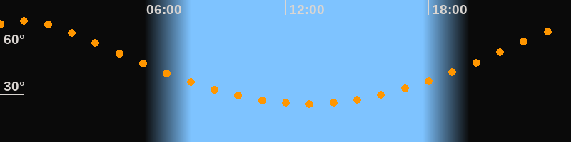 | Höchster Stand (Kulmination) | 00:54 Uhr (h = 76,9°) |