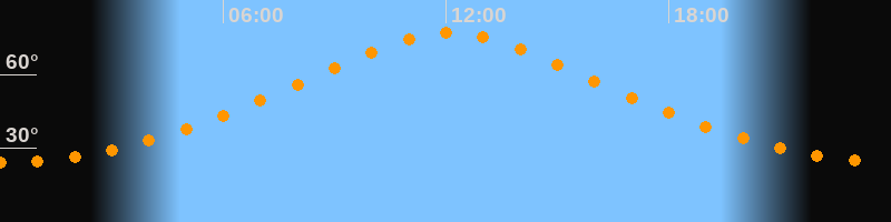 | Höchster Stand (Kulmination) | 12:05 Uhr (h = 76,9°) |