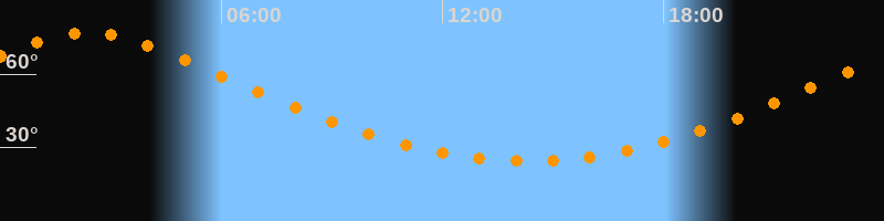 | Höchster Stand (Kulmination) | 02:23 Uhr (h = 76,9°) |