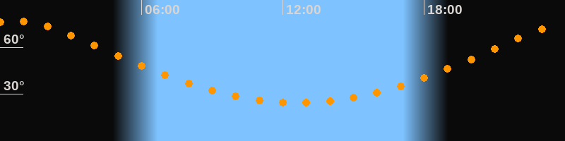 | Höchster Stand (Kulmination) | 00:37 Uhr (h = 76,9°) |