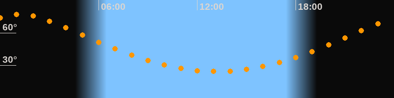 | Höchster Stand (Kulmination) | 01:13 Uhr (h = 76,9°) |