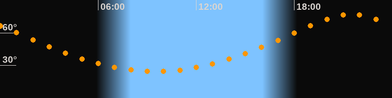 | Höchster Stand (Kulmination) | 21:29 Uhr (h = 76,9°) |