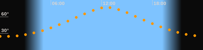 | Höchster Stand (Kulmination) | 12:38 Uhr (h = 76,9°) |