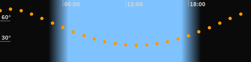 | Höchster Stand (Kulmination) | 01:02 Uhr (h = 76,9°) |