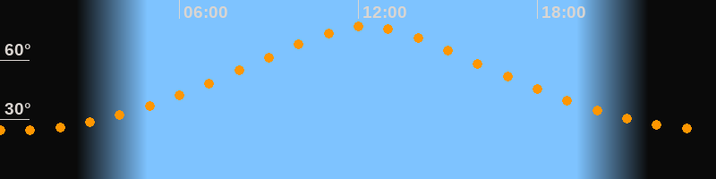 | Höchster Stand (Kulmination) | 12:16 Uhr (h = 76,9°) |