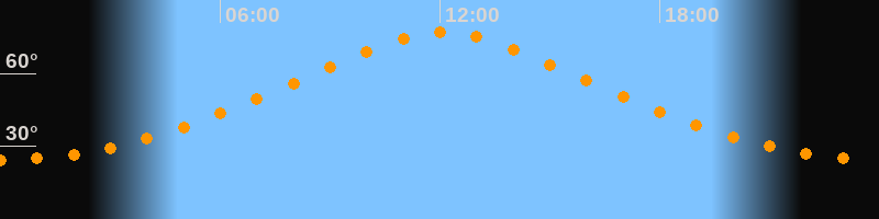 | Höchster Stand (Kulmination) | 12:04 Uhr (h = 76,9°) |