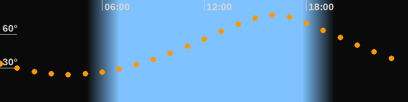 | Höchster Stand (Kulmination) | 16:05 Uhr (h = 76,9°) |