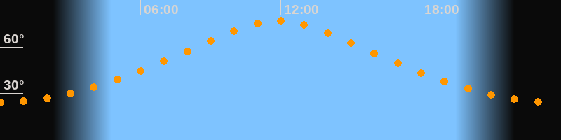 | Höchster Stand (Kulmination) | 11:53 Uhr (h = 76,9°) |