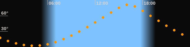 | Höchster Stand (Kulmination) | 16:10 Uhr (h = 81,2°) |