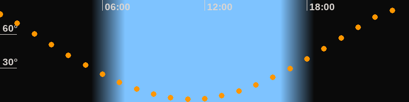 Höchster Stand (Kulmination)23:09 Uhr (h = 81,2°)