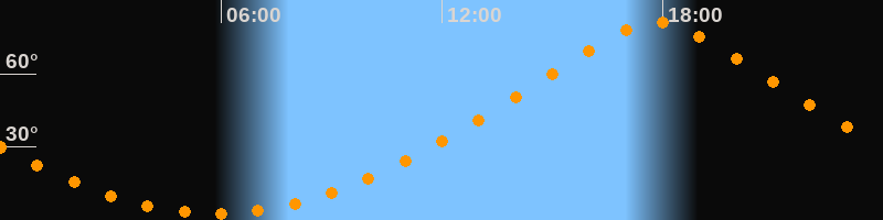 | Höchster Stand (Kulmination) | 17:50 Uhr (h = 81,2°) |
