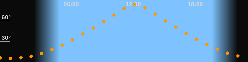 | Höchster Stand (Kulmination) | 13:03 Uhr (h = 83,9°) |