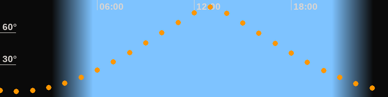 | Höchster Stand (Kulmination) | 12:58 Uhr (h = 83,9°) |