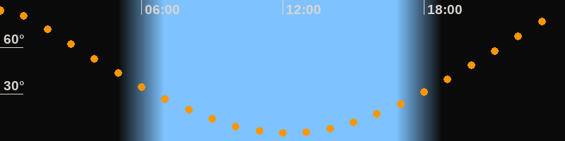 | Höchster Stand (Kulmination) | 00:11 Uhr (h = 83,9°) |