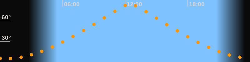 | Höchster Stand (Kulmination) | 12:28 Uhr (h = 83,9°) |