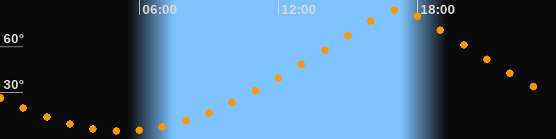 | Höchster Stand (Kulmination) | 17:11 Uhr (h = 83,9°) |