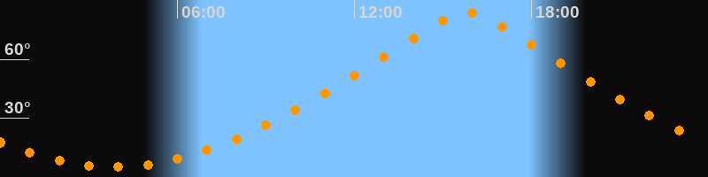 | Höchster Stand (Kulmination) | 15:49 Uhr (h = 83,9°) |
