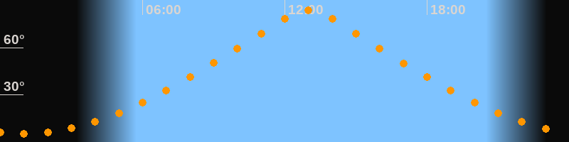 | Höchster Stand (Kulmination) | 12:59 Uhr (h = 83,9°) |