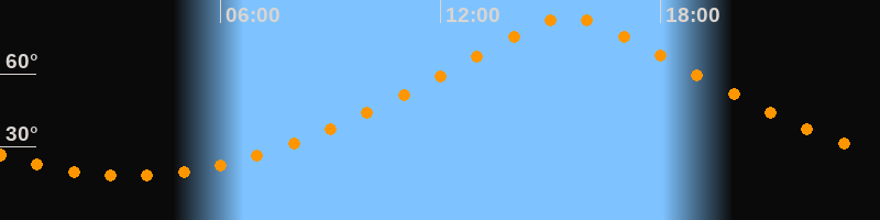 | Höchster Stand (Kulmination) | 15:30 Uhr (h = 83,2°) |