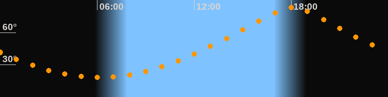 | Höchster Stand (Kulmination) | 18:05 Uhr (h = 83,2°) |