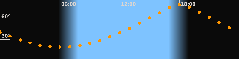 | Höchster Stand (Kulmination) | 18:03 Uhr (h = 83,2°) |
