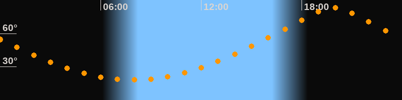 | Höchster Stand (Kulmination) | 19:54 Uhr (h = 83,2°) |