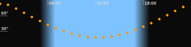 | Höchster Stand (Kulmination) | 00:14 Uhr (h = 83,2°) |