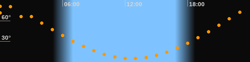 | Höchster Stand (Kulmination) | 00:38 Uhr (h = 83,7°) |
