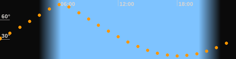 | Höchster Stand (Kulmination) | 06:10 Uhr (h = 83,7°) |