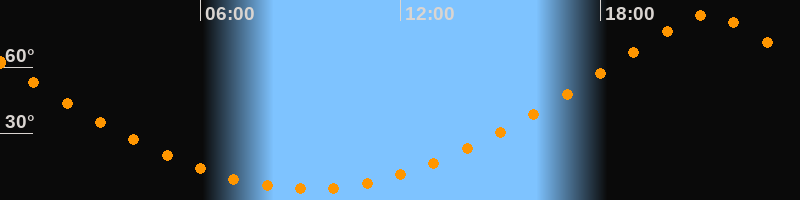 | Höchster Stand (Kulmination) | 21:14 Uhr (h = 83,7°) |