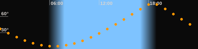| Höchster Stand (Kulmination) | 18:30 Uhr (h = 83,7°) |