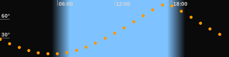| Höchster Stand (Kulmination) | 17:23 Uhr (h = 83,7°) |
