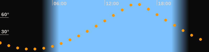 | Höchster Stand (Kulmination) | 15:34 Uhr (h = 83,7°) |