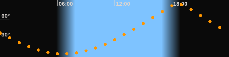 | Höchster Stand (Kulmination) | 18:39 Uhr (h = 83,7°) |